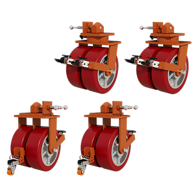 This four-piece set of imported container castors is designed for light-duty and occasional or infrequent use on solid, obstacle-free surfaces. The set has a load capacity of up to 18,000 kg and includes two swivel castors with brakes and direction…