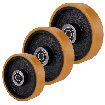 Heavy duty wheel with a polyurethane tyre and a cast iron core. *Bespoke sizes available, Manufactured in the UK. Please call 01296 431135 for more information.